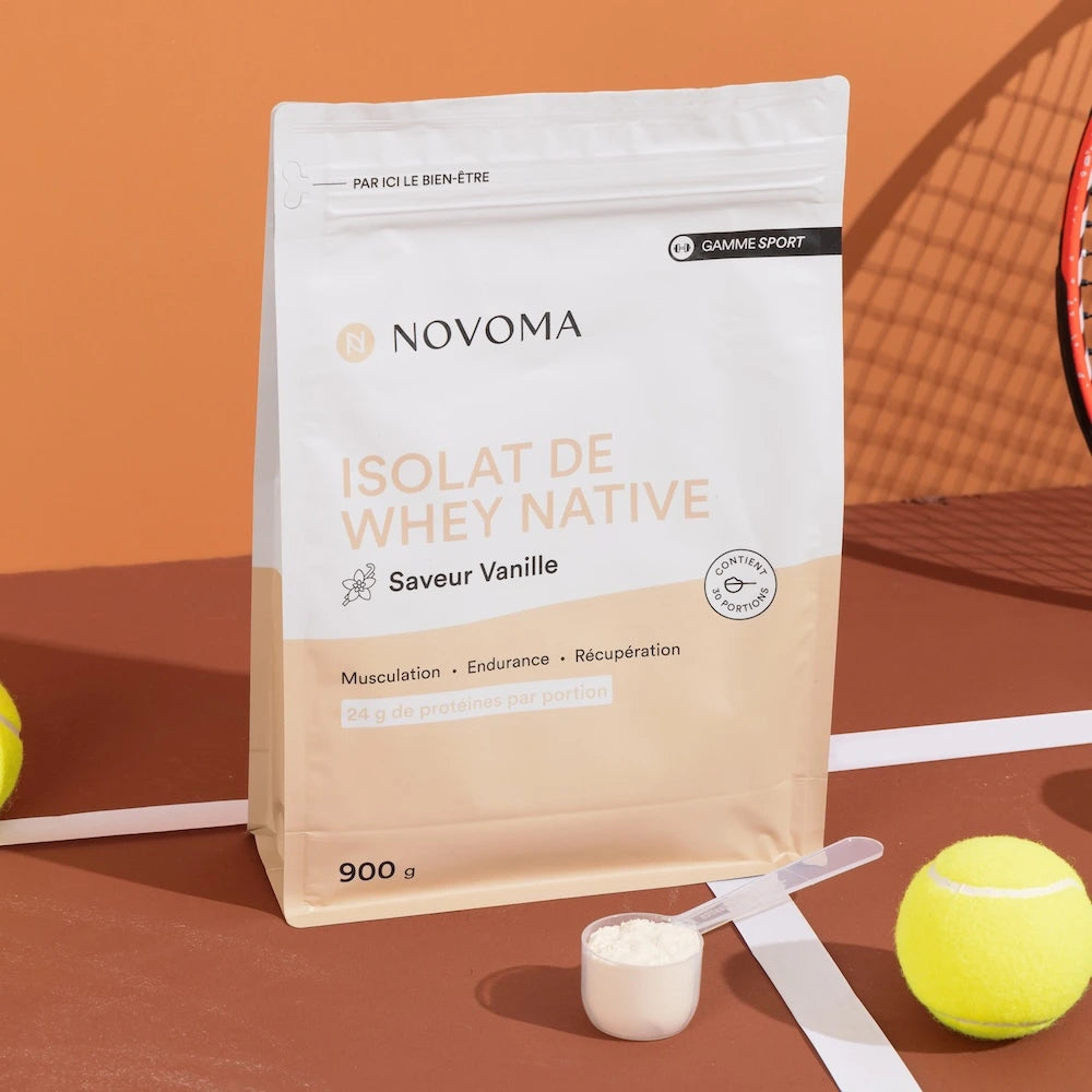 Novoma whey is produced from fresh milk sourced from cows raised on French pastures, ensuring optimal traceability and meeting strict standards for more responsible and sustainable nutrition.